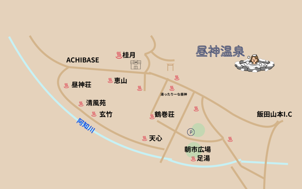 阿智村にある温泉、トロリとした肌触りの美肌の湯で知られる昼神温泉
