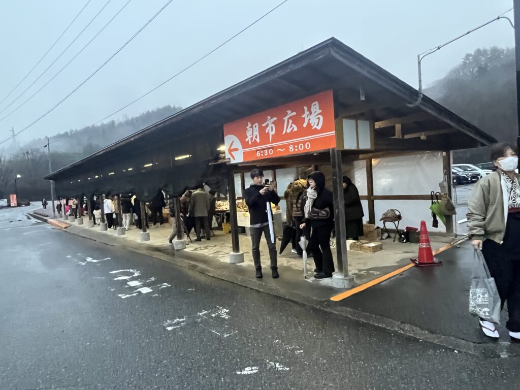 朝市が毎朝開催され お土産や採れたて野菜、はちみつ 自家製のジャムやおやき、漬物 たくさん並んでいてとても楽しかったです。暗くて寒かったですが、長居してしまいました。