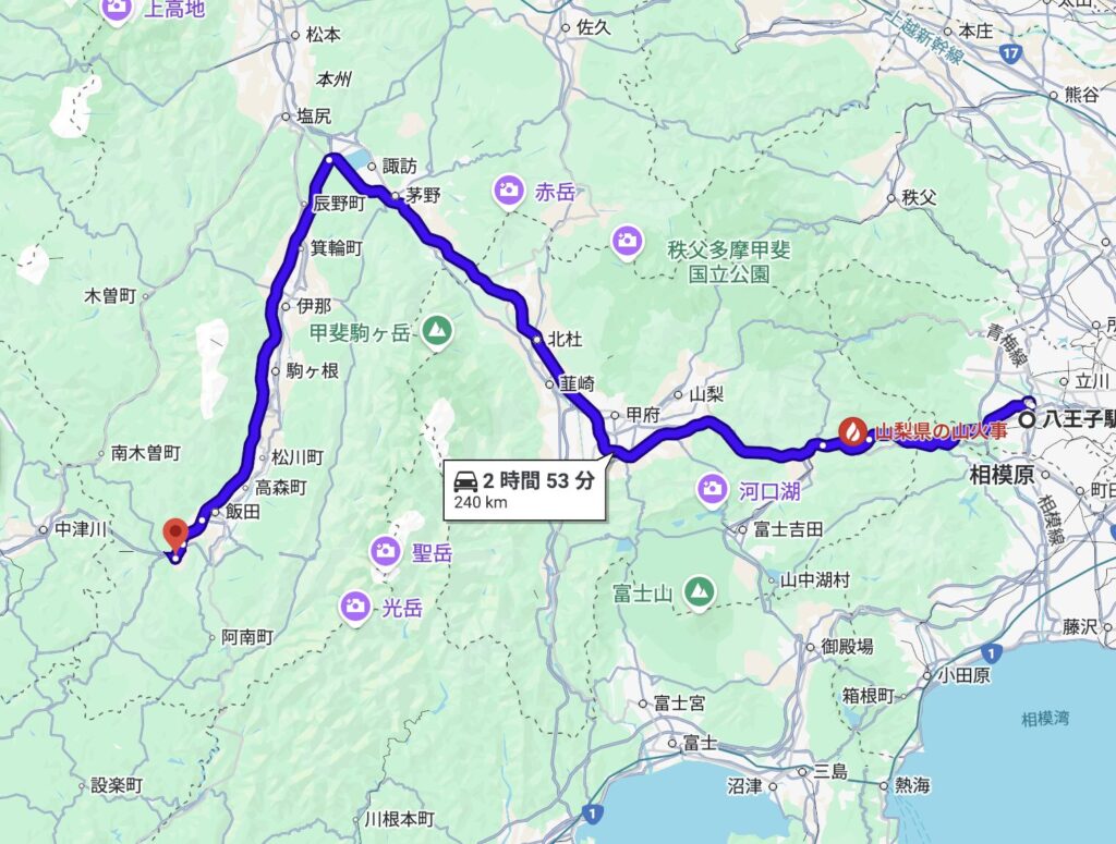 阿智村は長野県の南部に位置し、名古屋方面からも関東方面からも中央自動車道です。