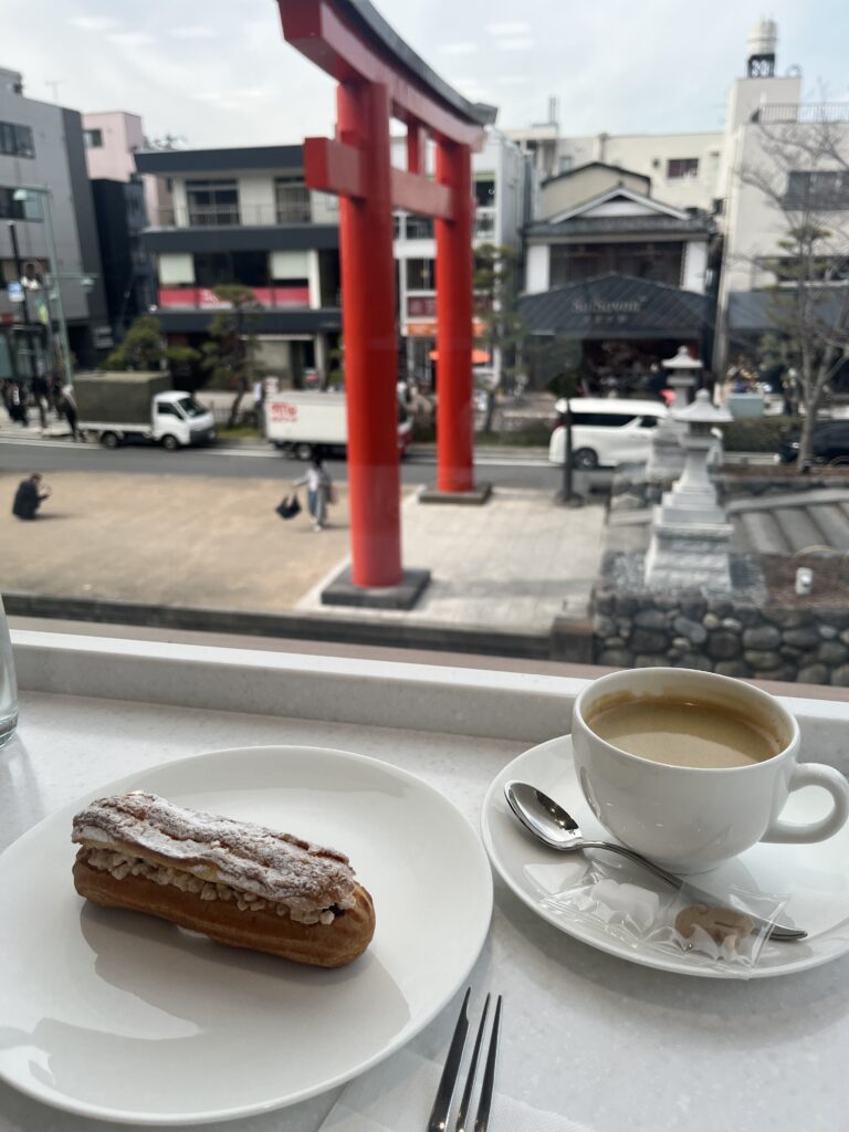 窓から二の鳥居を眺めながら、ゆっくりお茶が出来ます。
