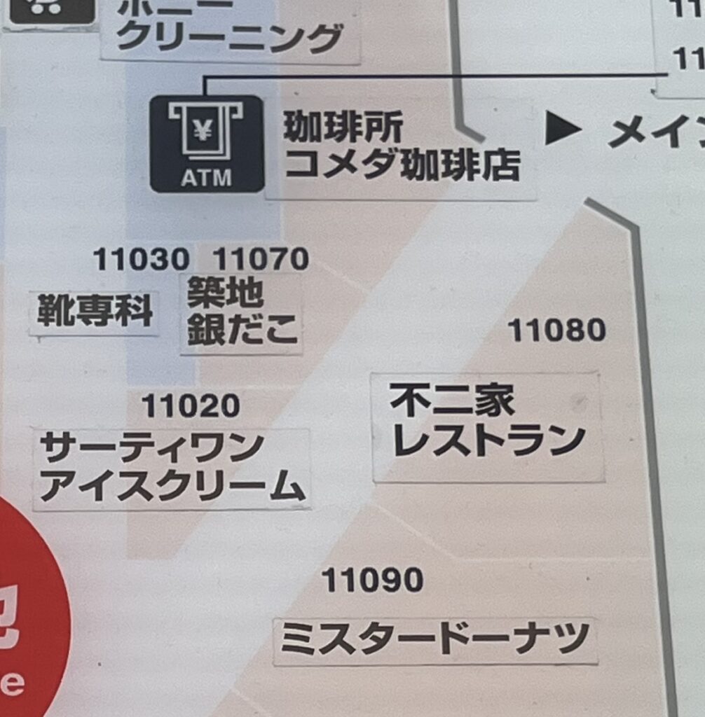 この一角にはミスタードーナツ、不二家、銀だこ、サーティワンがずらりと並んでいて、甘い誘惑がいっぱい。