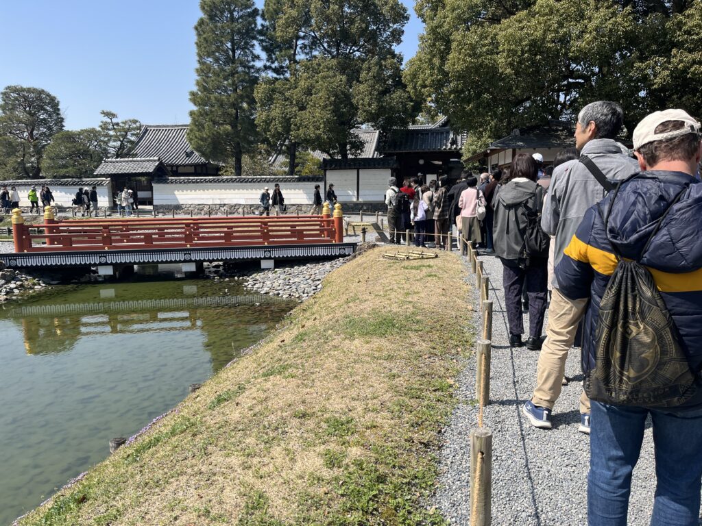 「かなり混んでいる」という情報をもとに実際の待ち時間を体験し、平等院や宇治の町をゆっくり歩きながら、